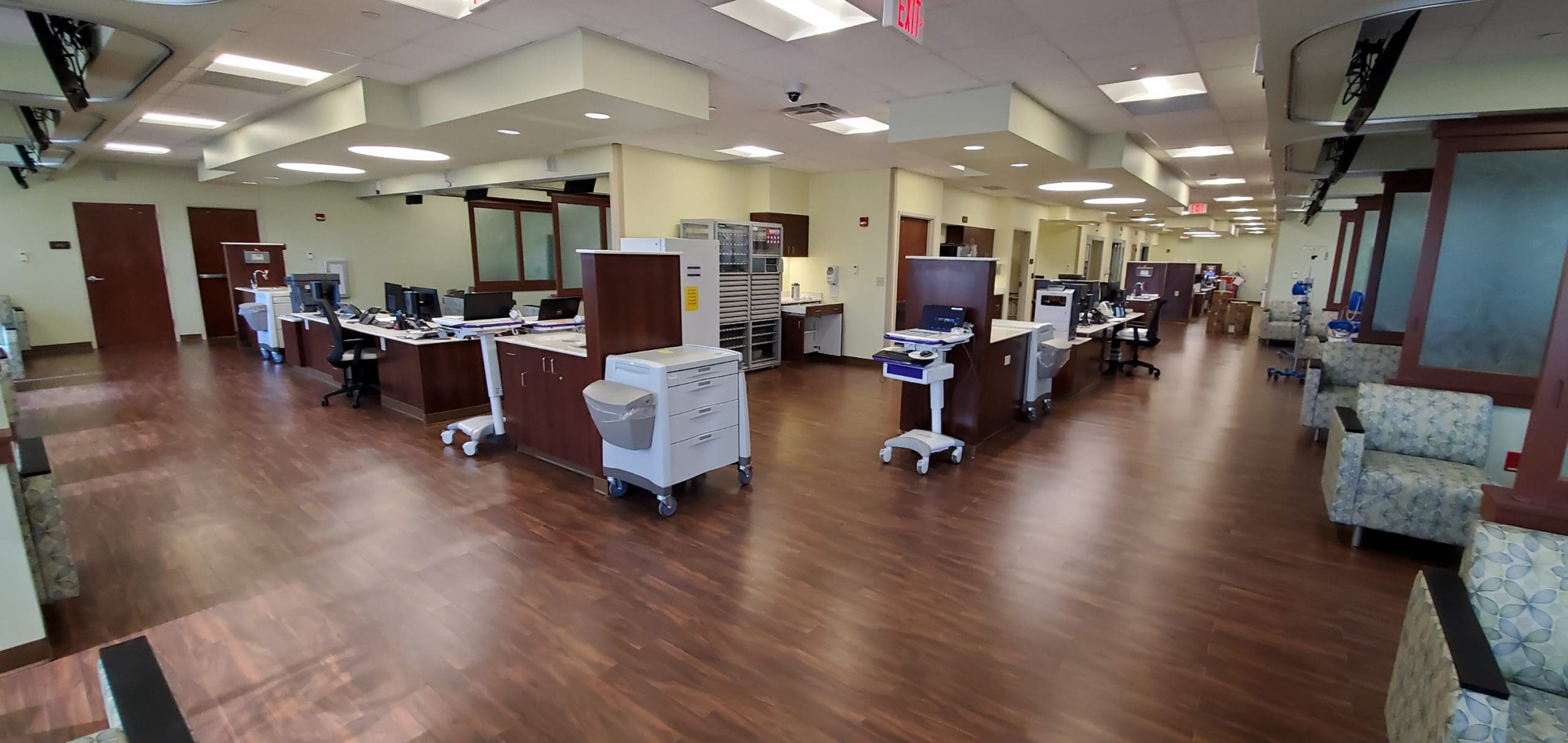 Our modern and comfortable infusion center features 23 private infusion stations.